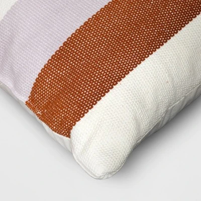 Elevate your lounge or living room setting with this Cabana Striped Woven Cotton Square Throw Pillow from Room Essentials™. This square throw pillow features a solid-color back and a colorblock print of cabana stripes for a modern look. The soft fill insert offers cushioned comfort, and the sewn seam closure gives it a clean, polished look. You can place it on your couch, armchair or any other space for versatile styling.
