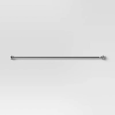 Hanging up curtains doesn’t get any easier than with the simple style and functional design of this Tension Rod from Room Essentials™. Made with steel for durability and stability, this metal curtain tension rod has simple curved accents near the flat ends for subtle touch of texture and style. With an adjustable design that helps you get just the right fit in your window and different sizes and finishes to choose from to meet your decor needs perfectly, this metal tension rod is an easy solution for your curtain hanging endeavors.
